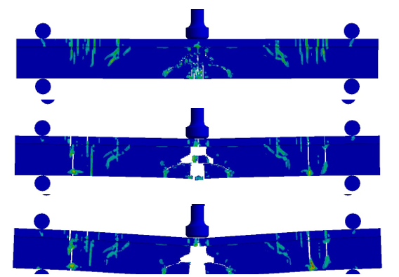 Figure. Strain contour and fracture behaviour of the Reinforced Concrete Beam