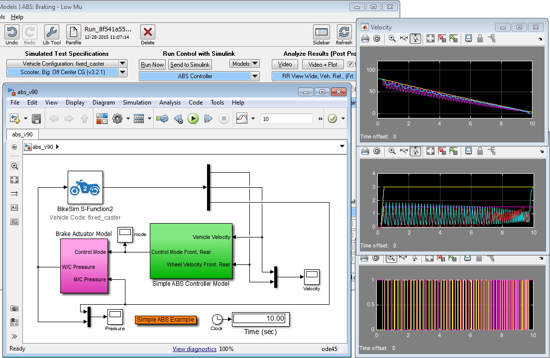 BikeSim is often run with controller models from Simulink, such as this ABS example. Click for more detail. |
