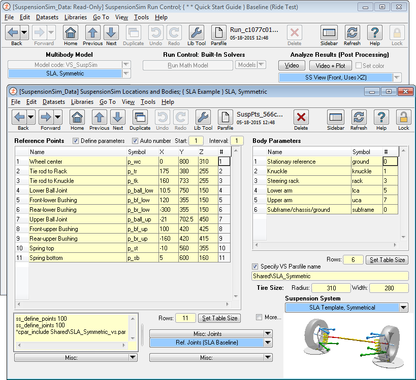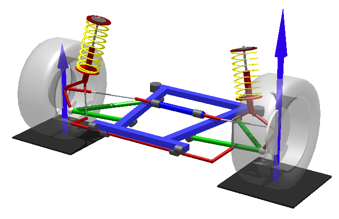 SuspensionSim differs in several ways from the vehicle simulation products BikeSim, CarSim, and TruckSim. Rather than using predefined parametric programs with specific multibody models, SuspensionSim uses a multibody solver program that builds models based on user datasets.